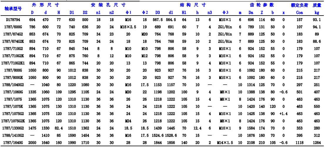 轉盤軸承根據不同結構型式可以分為四點接觸球轉盤軸承、雙排角接觸推力球轉盤軸承、交叉圓柱滾子轉盤軸承、交叉圓錐滾子轉盤軸承和三排圓柱滾子組合轉盤軸承等不同的結構型式;上述各類軸承按其是否帶齒及齒的分布部位又分為無齒式、外齒式或內齒式等不同結構。下面宜陽龍馬軸承就四點接觸球轉盤軸承為例分別給大家詳細介紹下四點接觸球轉盤軸承內外齒結構分別對應的型號,希望對于大家在選擇時能有個參考。